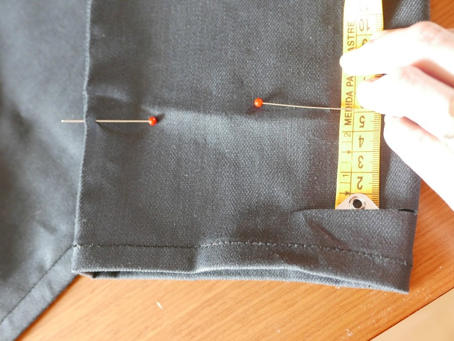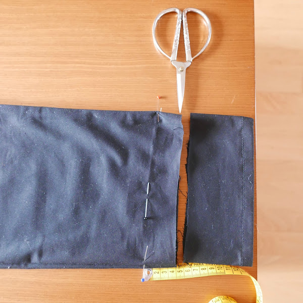 En este caso hemos dejado 4 cm de tejido extra, para dar la vuelta hacia adentro.