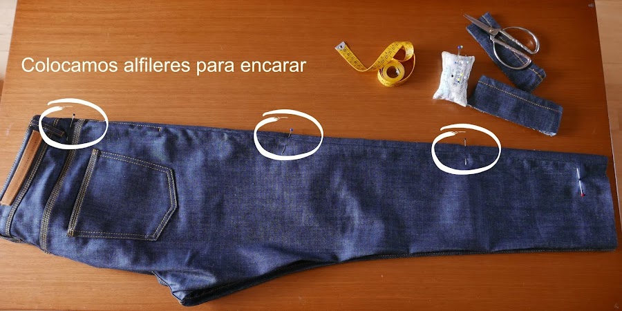 Así, importante: Hay que probar todos y cada uno de los pantalones. Marcar la medida a la que queremos dejar el pantalón, a partir de ahí dejar unos 4 o 5 cm y cortaremos la tela sobrante.