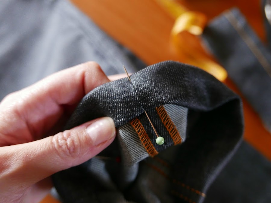 Y después podemos coser el bajo con un pespunte, como aparece en la foto o hacerlo a mano a punto escondido: