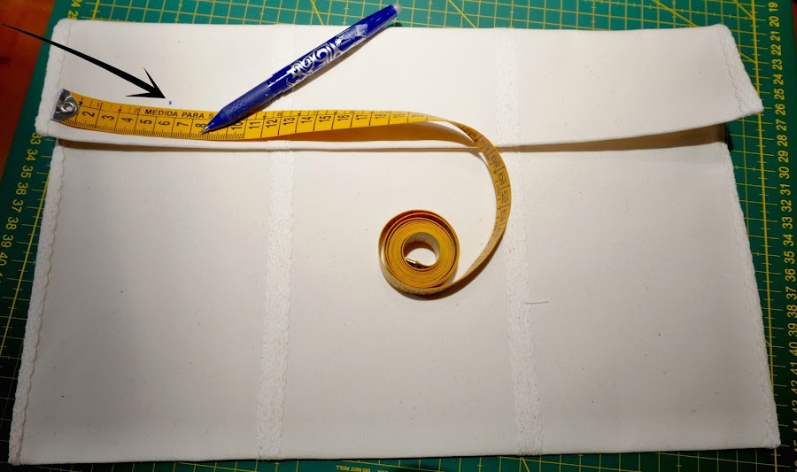 Ahora doblaremos la vuelta de la bolsa, lo haremos a 6 cm hacia el revés: