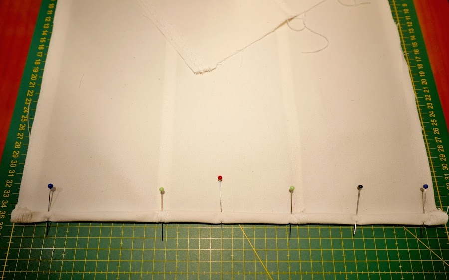 A 6 cm del límite superior de la tela, doblamos hacia adentro, teniendo en cuenta que 1 cm lo dejaremos para doblar y que por dentro quede bien pulida la zona. Una vez bien tomadas estas medidas aseguramos con alfileres.