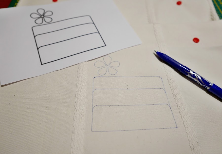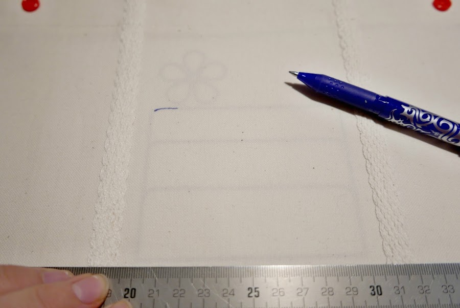 Con el rotulador Frixion de Pilot, lo vamos dibujando para pasar el dibujo a la tela.