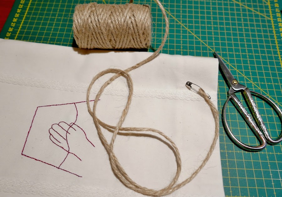 Cinta para atar: 60 cm (podéis utilizar muchos tipos de cinta, desde grosgrain, cinta de raso, cordón de diferentes tipos, por ejemplo la que aparece en el tutorial es de esparto.