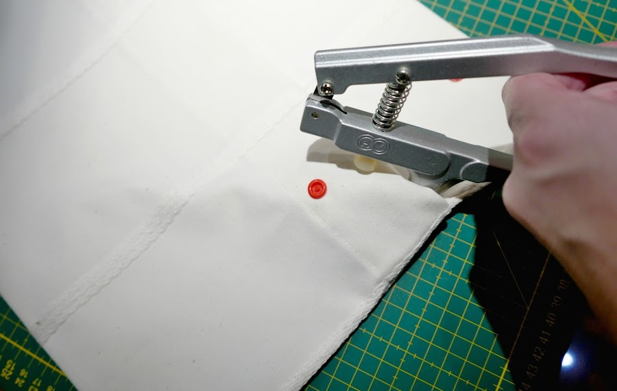 Y marcada la zona exacta, ya podemos colocar los snaps con los alicates, especiales: