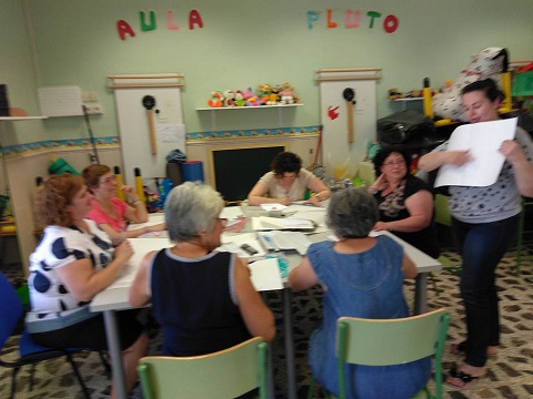 El curso fue muy productivo y aprovechamos muchísimo el tiempo porque como veis estábamos todas muy aplicadas. Fijaros como teníamos la mesa llena de material.