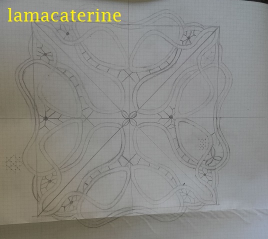 Esta sobre papel, ahora me queda picarlo sobre una cartulina, repasarlo en rotulador, dibujar el punto de fondo y trabajarlo con los bolillos.