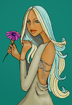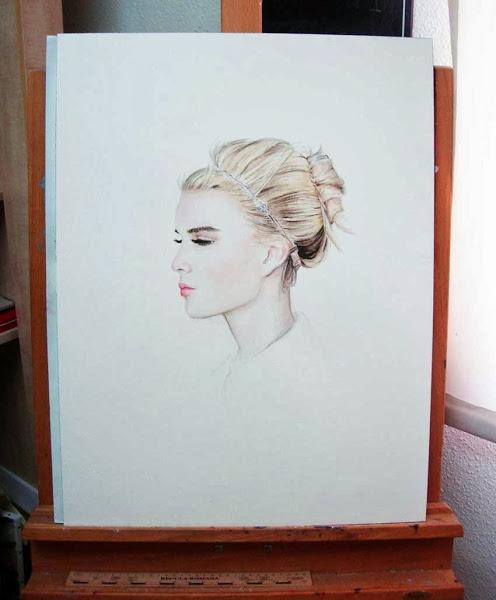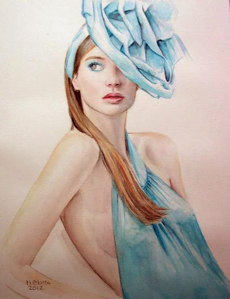 Azul, interpretación en acuarelas de una fotografía. De esta obra estoy especialmente satisfecha con el efecto "panneggio" del tocado de la cabeza.