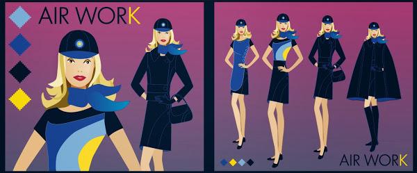 Air work, trabajo realizado con Corel Draw, para un certamen de ilustración de moda. Homenaje al diseñador Elio Berhanyer