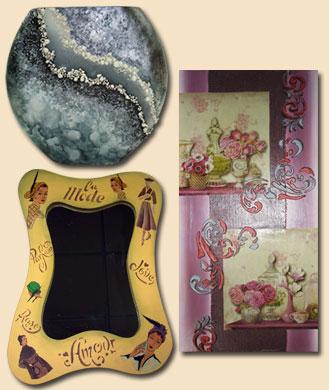 do con la técnica mixta de decoupage y Stencil.