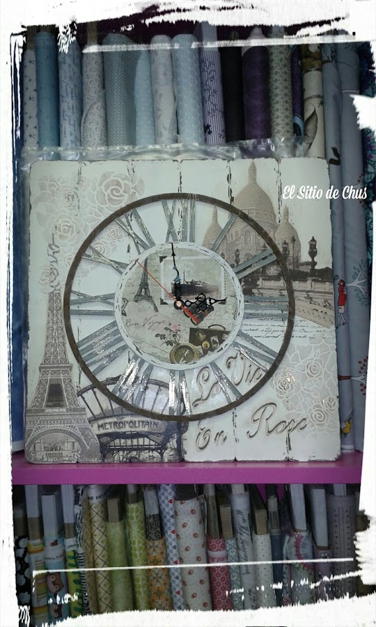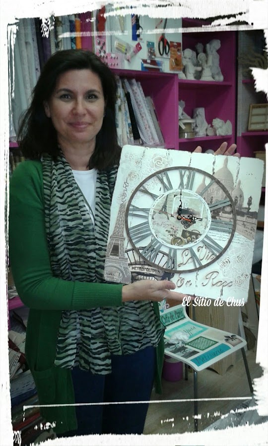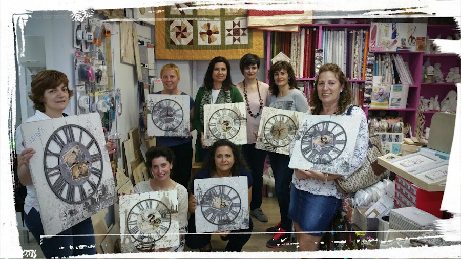 Un curso para la realización de este precioso reloj que impartía Marisa en Ammarte Manualidades Creativas. Un curso muy completo en el que usamos varias técnicas de pintura creativa, decoupage, stencil, estuco..... en un ambiente estupendo, con gente maravillosa.