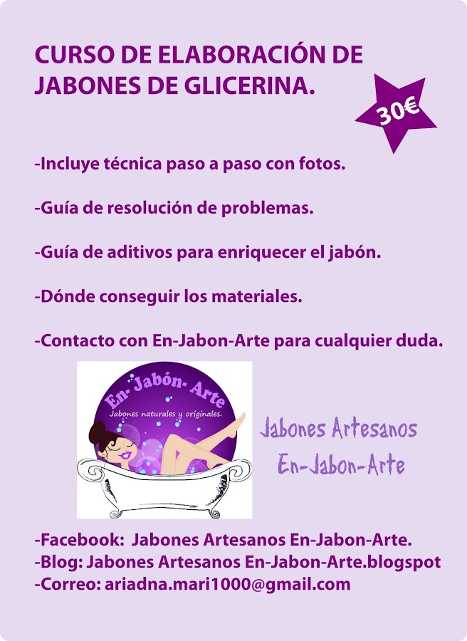 Ya lo teneis disponible, este es el primero: Elaboración de jabones de glicerina, pero mi idea es preparar más, otro de técnicas, otro de elaboración de jabones de aceite y otro de cosmética...llegarán, mientras podeis iniciaros con este, espero que os apasione tanto como a mí...