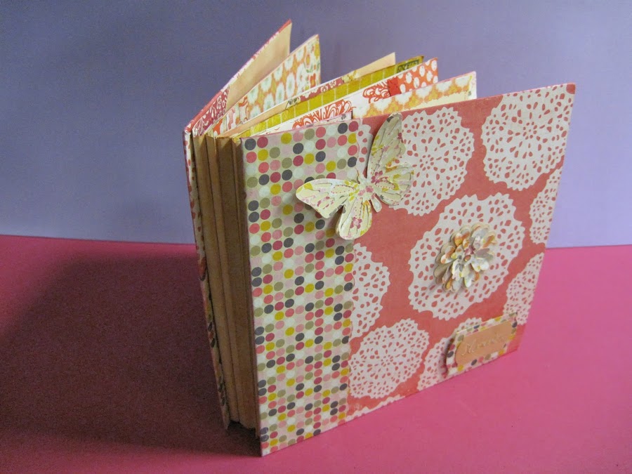 Cada asistente encuadernara su propio álbum.Hojas decoradas con diferentes técnicas: sobres, desplegables, bolsillos, tarjetas, etc. como el de las siguientes fotos: