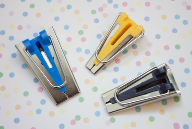 Para hacerte tu propio bies, puedes cortar el trozo de tela necesario e ir doblando los bordes de la tela, ya sea sujetando con alfileres, hilvanando o poco a poco a la vez que lo planchas o... usar unos aparatitos de metal que son ¡perfectos!