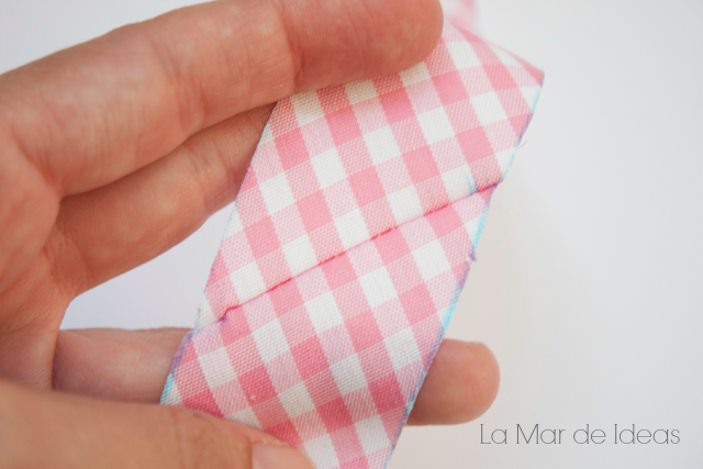 Por último solo queda meterlo por el aparatito de metal con ayuda de un alfiler y plancharlo a la salida, de forma que va quedando doblado con la anchura que te indica el aparato escogido.