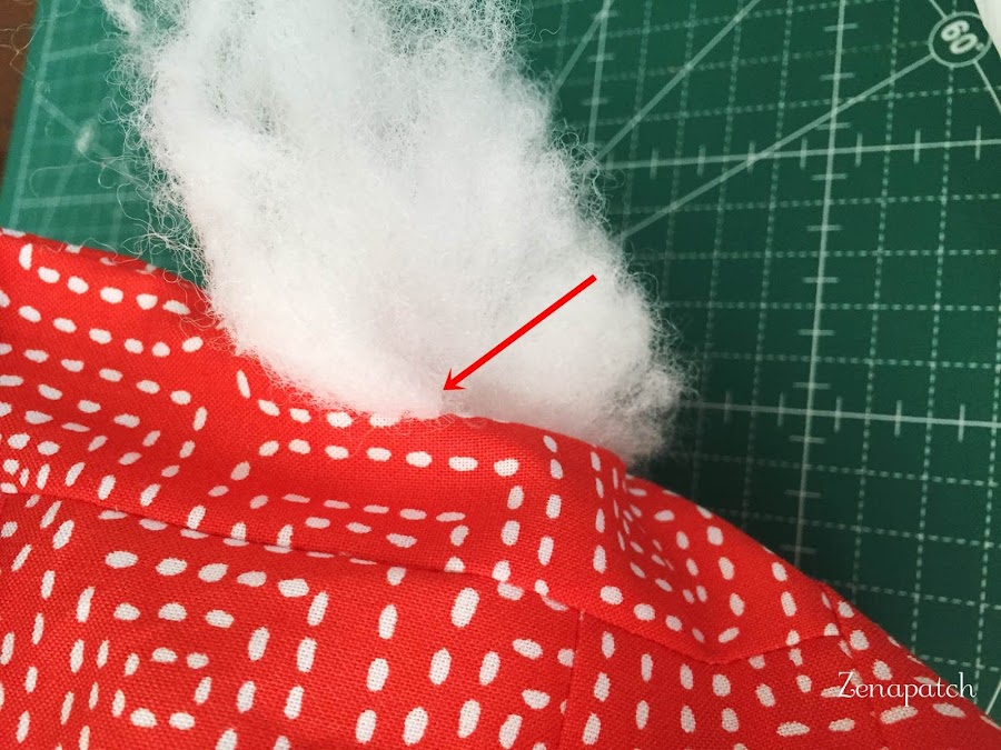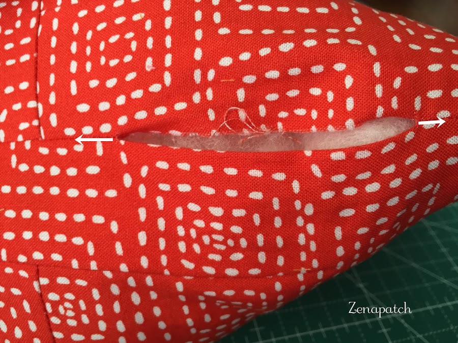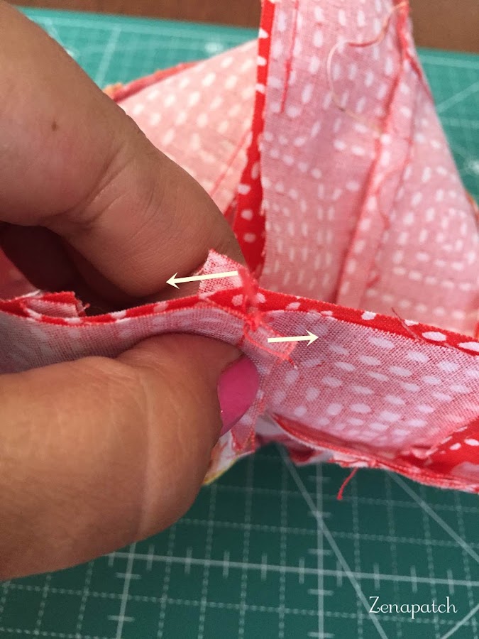 Tira de los extremos (entre la cresta y la costura donde dejamos la apertura) hasta hacerlos coincidir