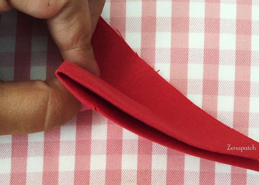 Corta una tira del mismo color que la anterior de esa medida, 9x5cm. Cose, asienta y plancha, que ya me entiendes si te resumo así, verdad? ;)