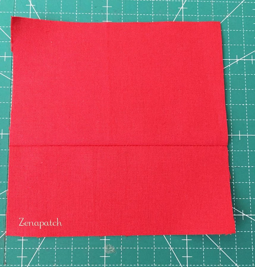 Corta un rectángulo de tela, en mi caso medía 15x 7cm, pero realmente puedes hacerlo de la medida que tú quieras! Plancha a la mitad y colócalo, pero esta vez dejando el lado del doblez en el borde del bloque.
