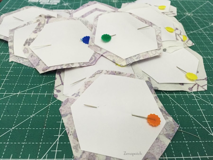 Desde finales de la semana pasada he tenido mucho insomnio; para que te hagas una idea te diré que la mayoría de días no podía dormir más allá de las 5 de la mañana, y el colmo fue el martes, que me desperté a las 2 y listo, ya no pude dormir más. Pues bien, quería aprovechar ya que estaba despierta, así que me propuse hacer algo con hexágonos, ya que es una técnica que (por lo menos yo lo hago así) no hace ruido, al ser cosido a mano, además de ser perfecta para aprovechar retalitos! ;)