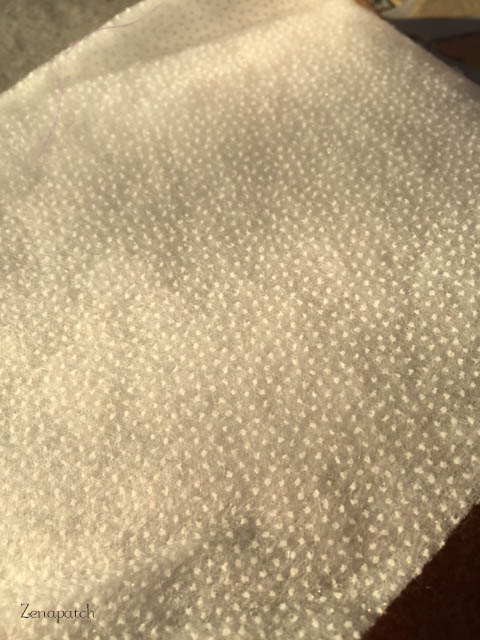 - Termoadhesivas: yo las uso mucho, ya que me resultan muy cómodas para hacer neceseres, estuches, etc. Son sintéticas y tienen una parte rugosa de puntitos, que es un pegamento que se activa con calor. La zona de puntitos se coloca en contacto con la trasera de la tela, y al pasar la plancha se queda pegada, así que te evitas tener que sujetarla con imperdibles o spray. ¿Ventajas? es más cómoda para trabajar. ¿Inconvenientes? si no tienes cuidado es fácil que se te pegue a la suela de la plancha, y es más cara que la guata normal, en torno a los 12??? el metro.
