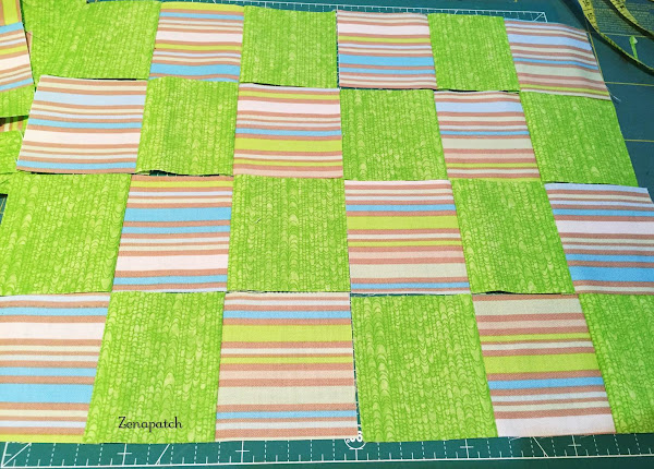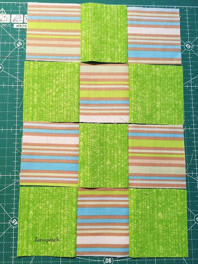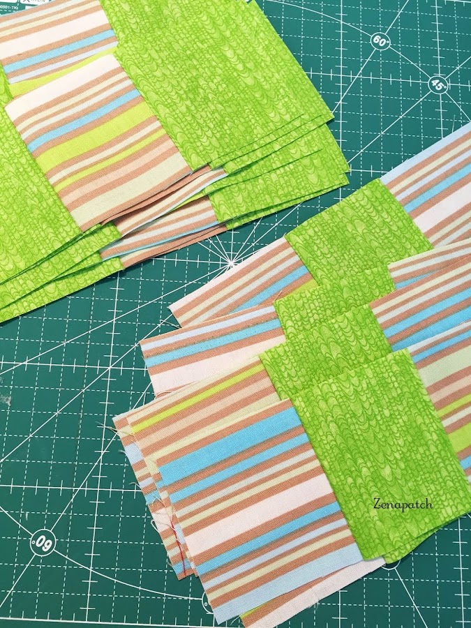 ¿Ves qué fácil? Con unas tiras puedes terminar con dos bloques iguales pero con colores alternos, sólo cambiando el orden en que los coses ;) Para coserlos, te recomiendo que mantengas cada uno en su "fila", para que no te líes