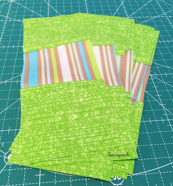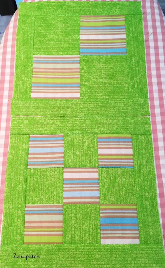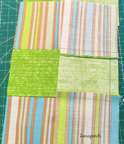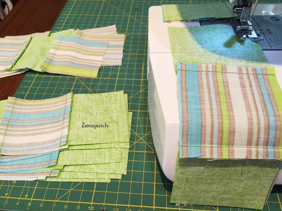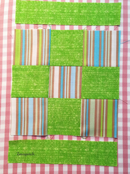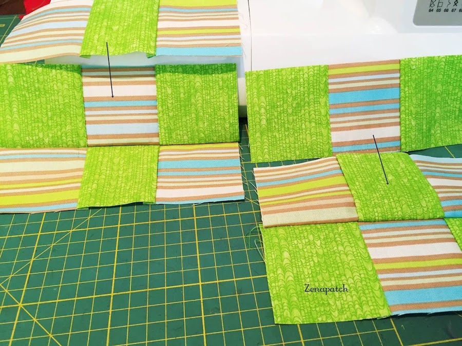 Manten tus filas de 3 patchs cerca y practica el "chain piecing" o encadenado, como te expliqué en la lección anterior, y en unos minutos tendrás un par de bloques casi listos!