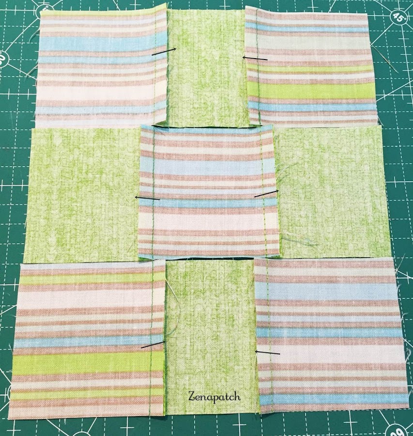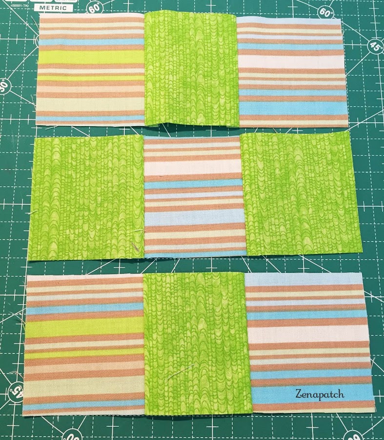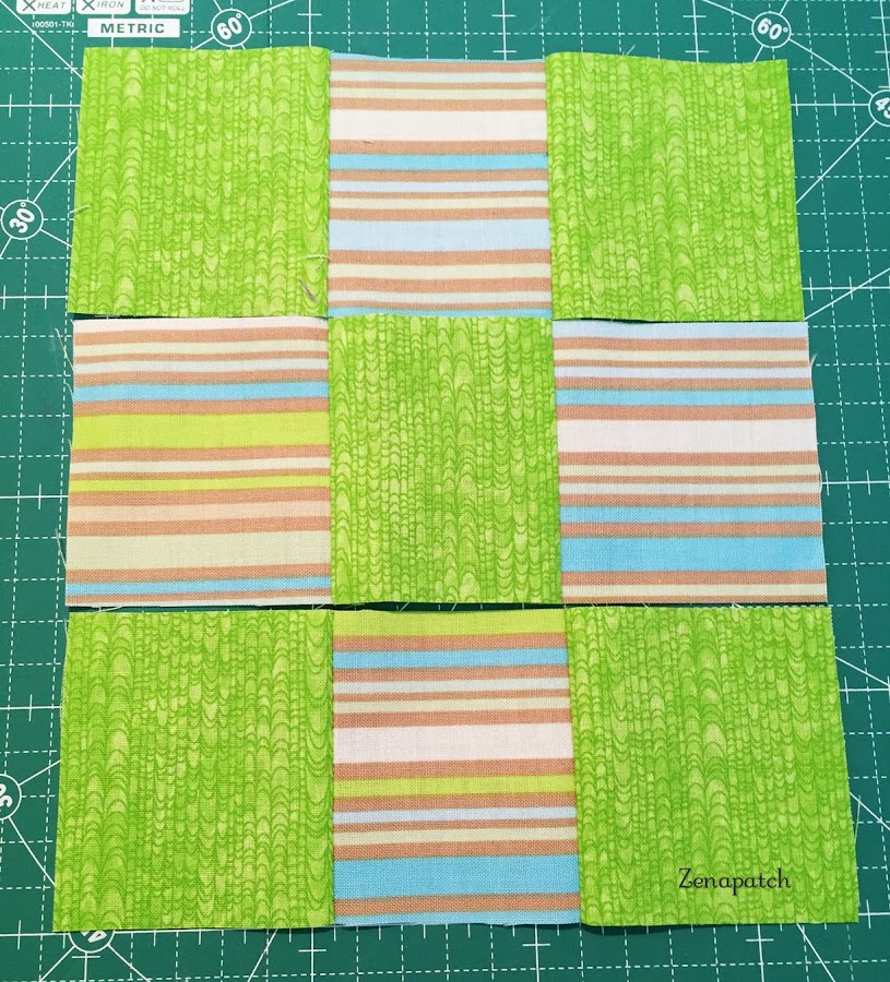 Si unimos 3 tiras de nuestros 3 patchs... 3x3... nuestro 9 Patch!! Aquí dependerá de cómo las montes para que tengas este resultado: