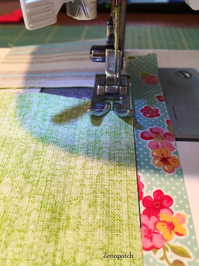 1 - cuando cosamos tiras largas si tienes miedo a que no te queden rectas, puedes poner un poco de Washi Tape (ya sabes lo que me gustan!) y así tendrás una guía