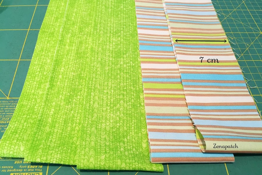 Para hacer este bloque necesitarás un color claro y otro más oscuro, que haga destacar al otro, las cortaremos de 7 cm de ancho por el largo de la tela.