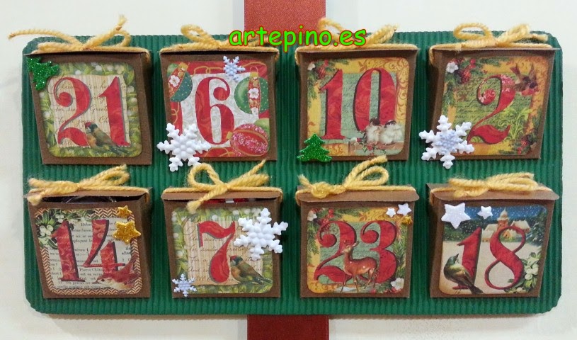 Así que para tod@s aquellos que les guste ese espíritu navideño y quieran realizar algo original, aquí os presento este calendario de Adviento. Para los que os gusta ir contando los días que faltan hasta Navidad y ya de paso llevarte un premio diario según se va acercando el día.