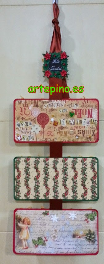 Os dejo las fotos para que lo veáis con detalle, os enseñare a hacer todo lo que compone el calendario, con vuestras propias manos, incluidas las flores que forman la corona de Feliz navidad que están hechas con papel...