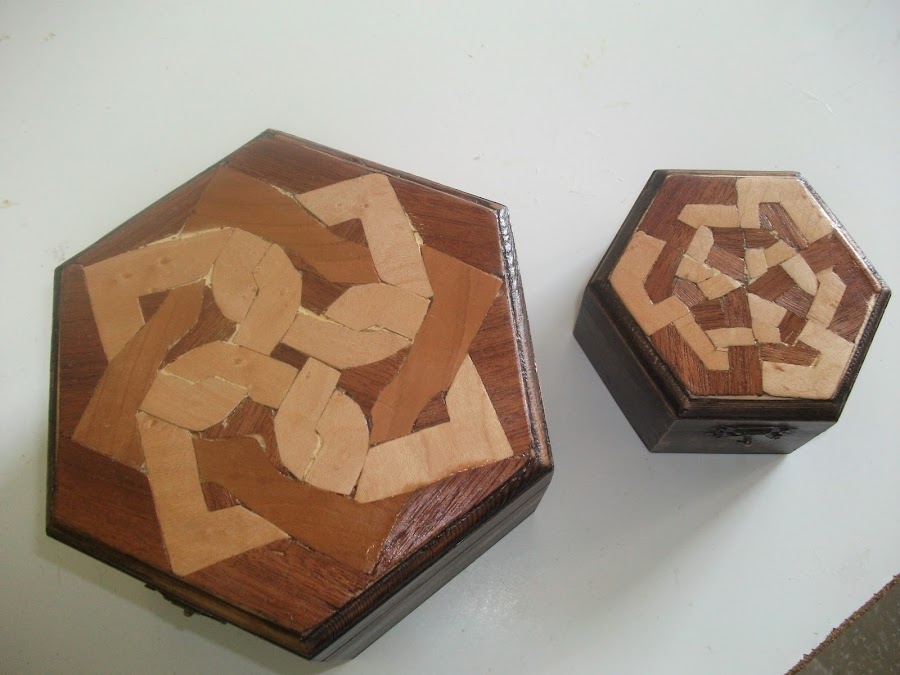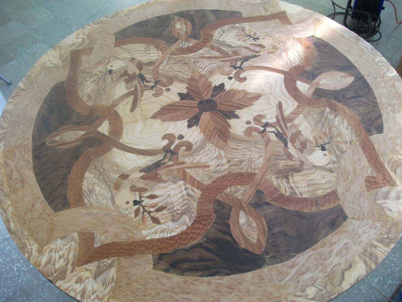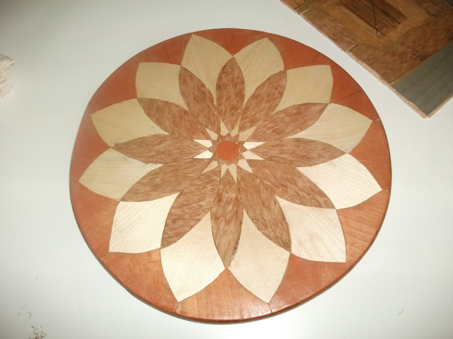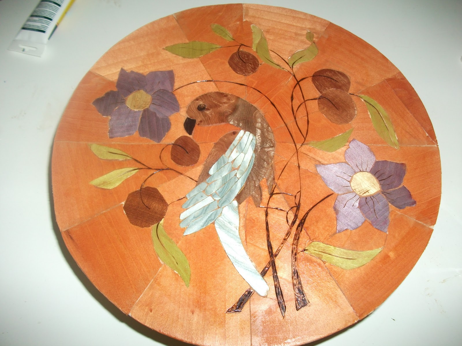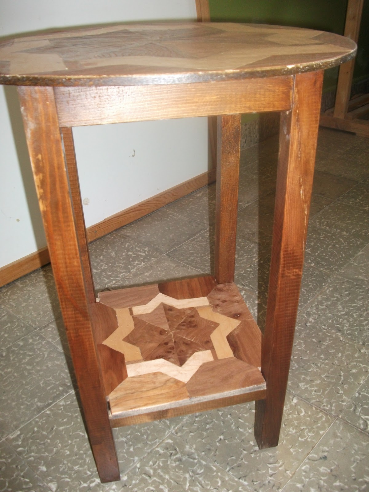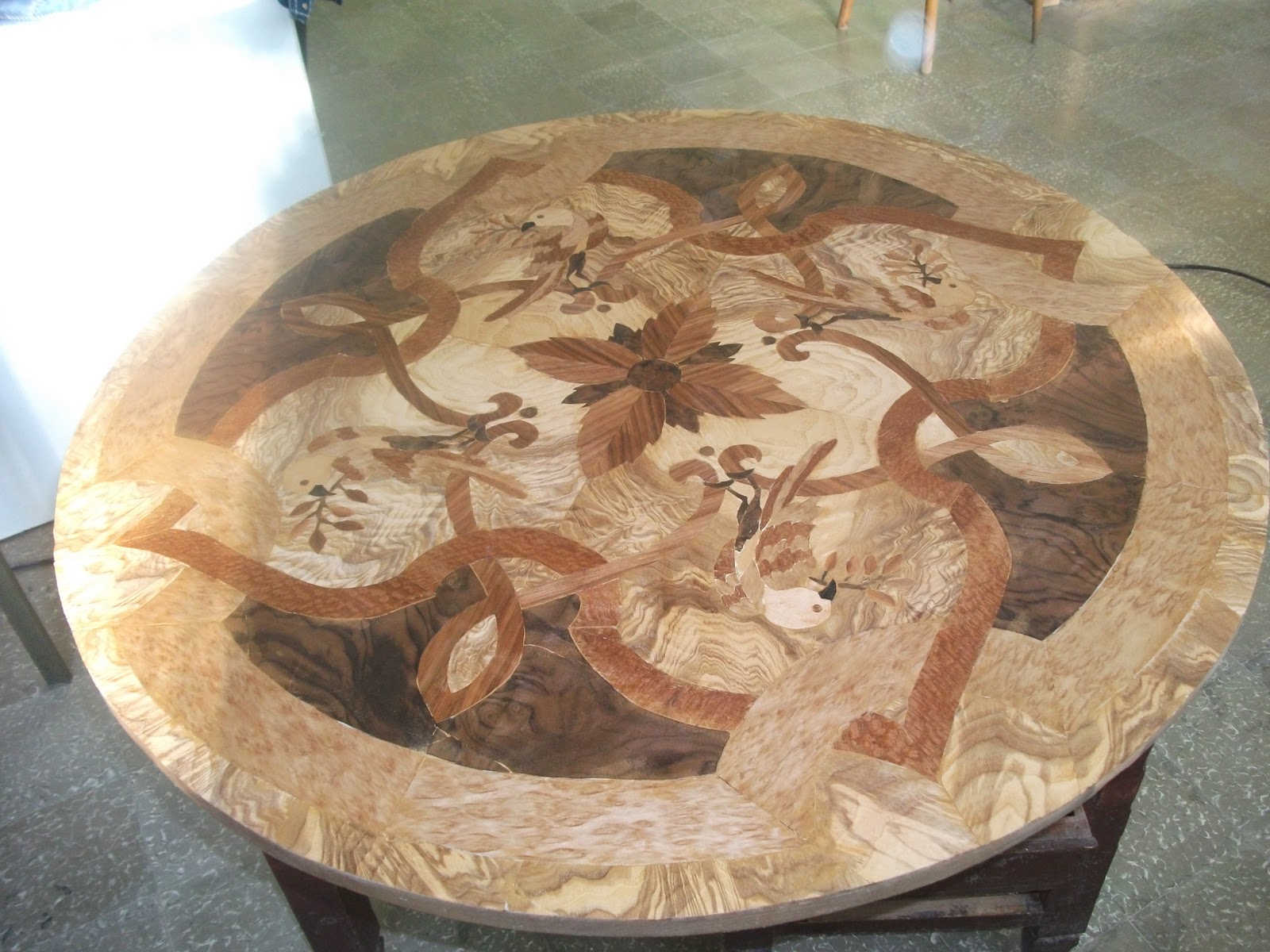 Aquí otro de los trabajos, una mesa preciosa, nadie diría que es la primera labor que ha hecho en taracea.