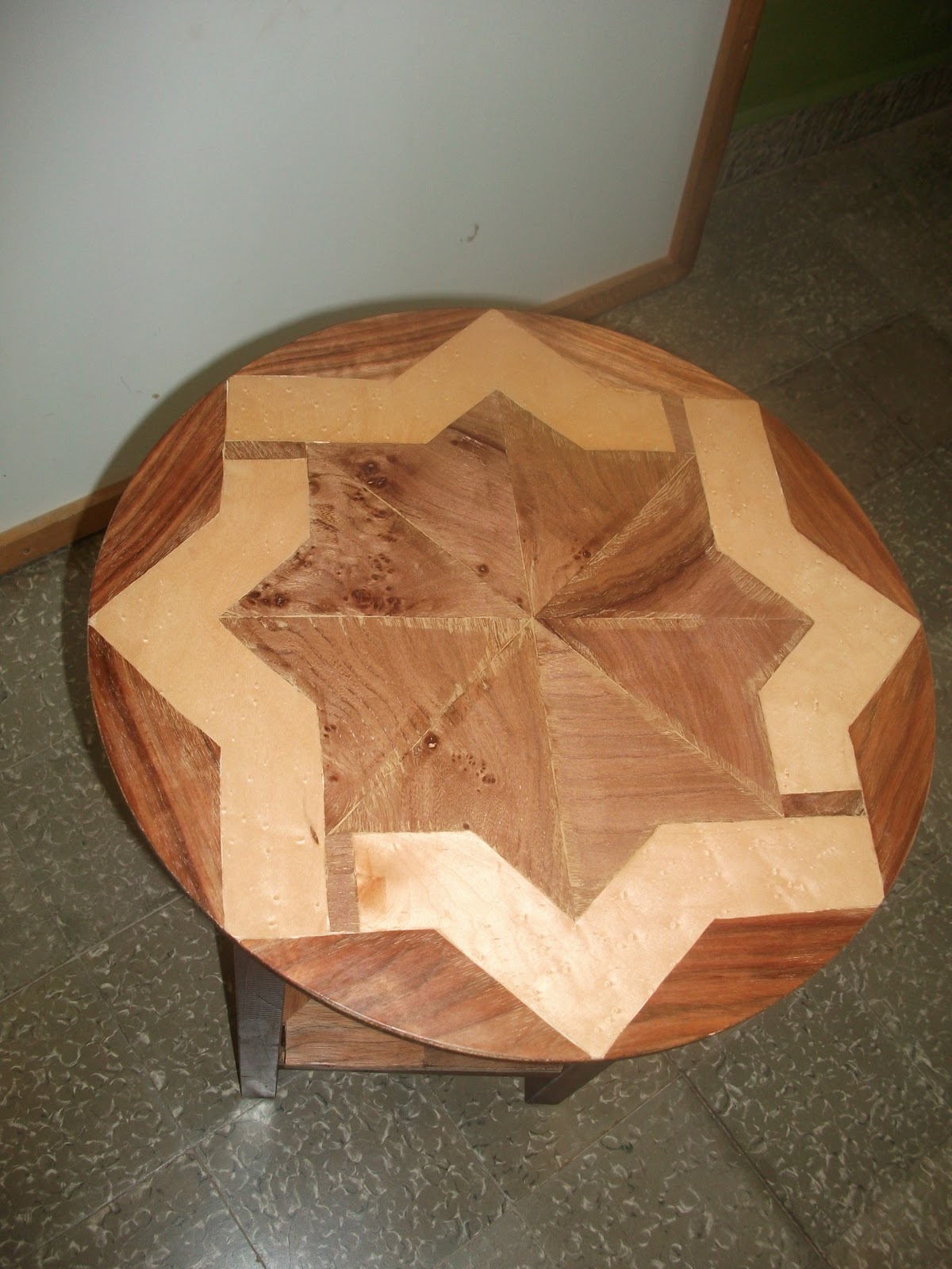 Esta es una mesa que va a servir de mesilla junto con otra, la foto muestra la parte de abajo, y en la siguiente la parte de arriba desde dos puntos diferentes. Se ha elegido como motivo la estrella mudejar tan representativa de Teruel.