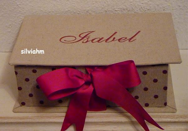 Curso de 3 horas. Aprenderemos a hacer esta caja libro (27x 17"5x8cm.) y a forrarla en tela. Puedes elegir tu tela entre un montón de diseños: Vintage, flores, toile de jouy....