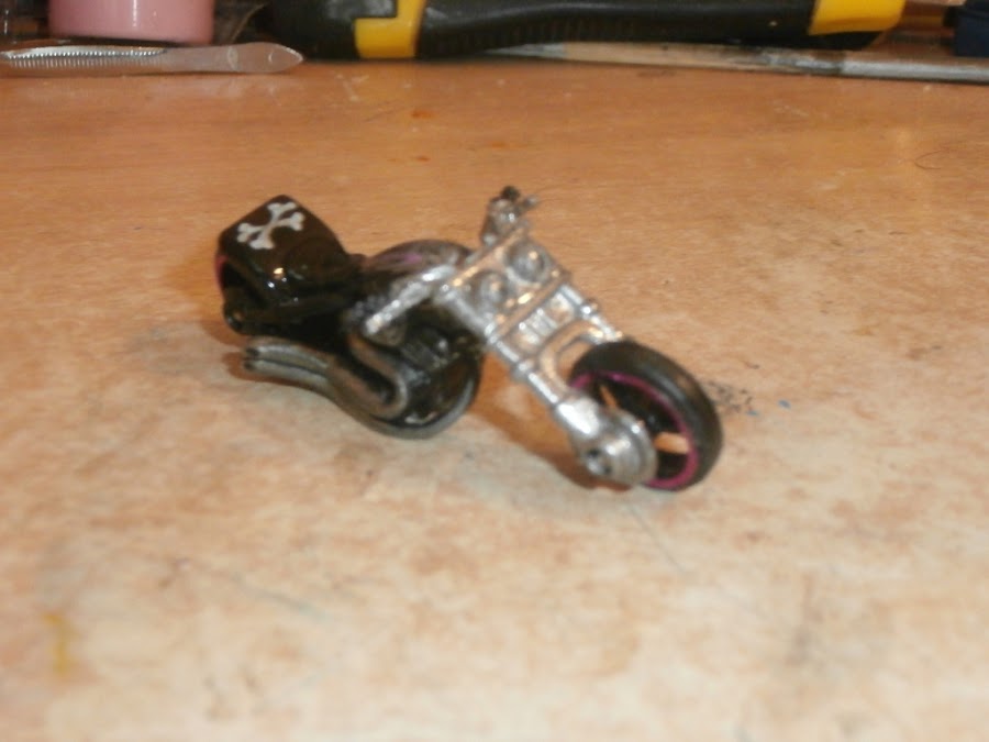 Asi que decidi fabricarle yo mismo una horquilla, la hice scratch con clips para papel, para los puños del manubrio y los amortiguadores use el forro de un cable.