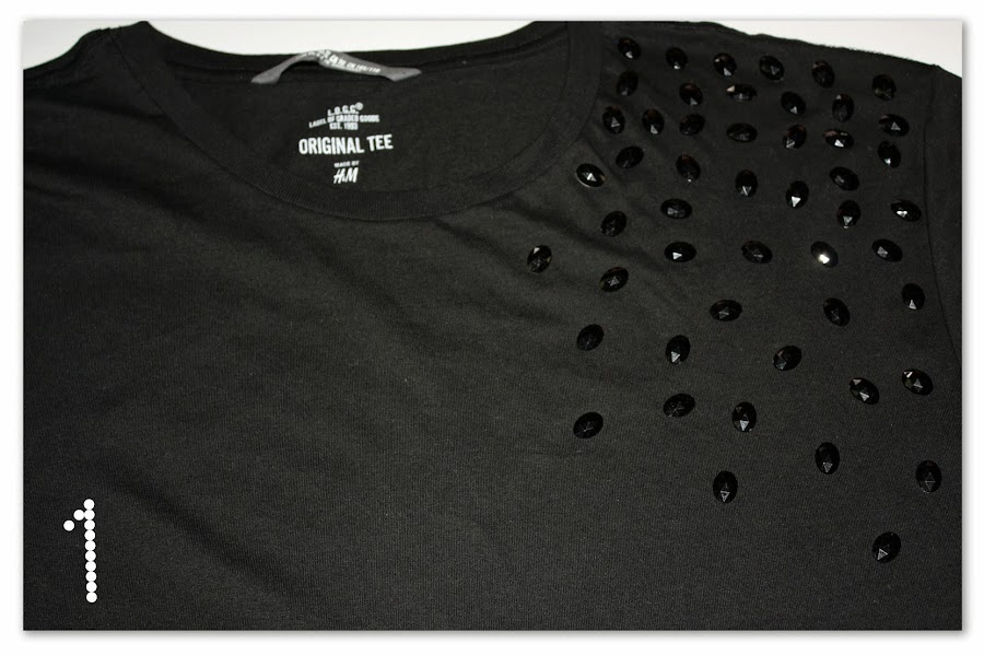 Lo pegamos en el sitio que queremos. estos dos últimos pasos lo repetiremos con todas las piedras.Es muy fácil y sencillo customizar con esta técnica una camiseta, y en menos de media hora tendrás una camiseta totalmente nueva para poder estrenar.