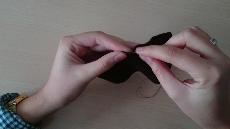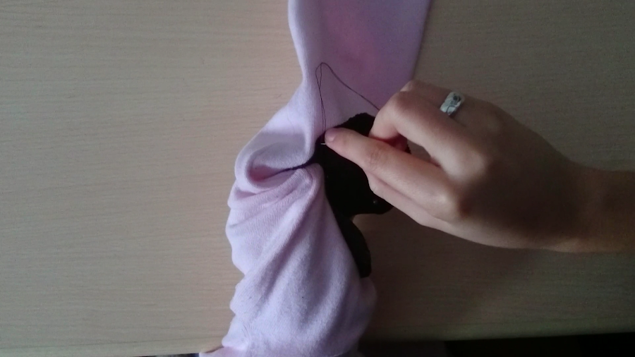 Empezamos a coserla a la prenda con puntada de pespunte.