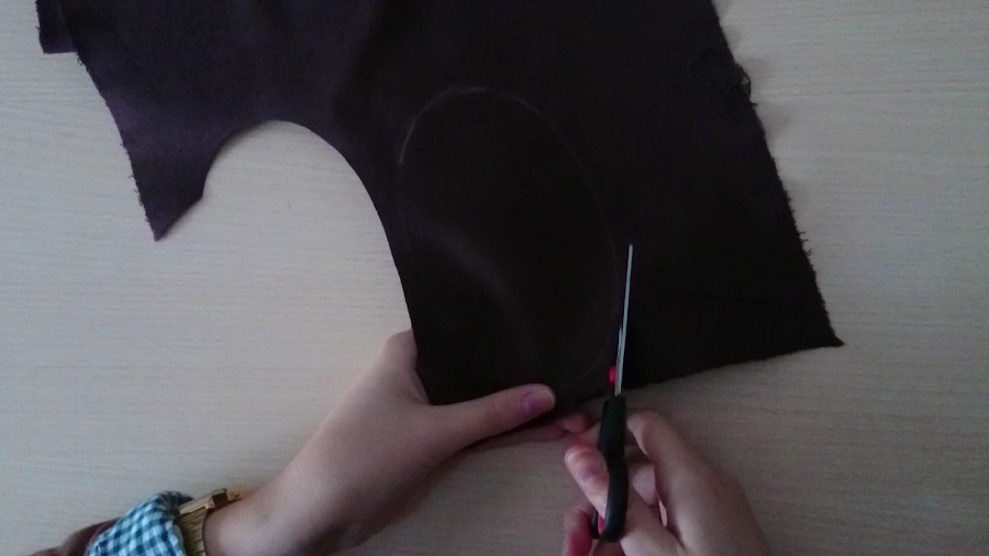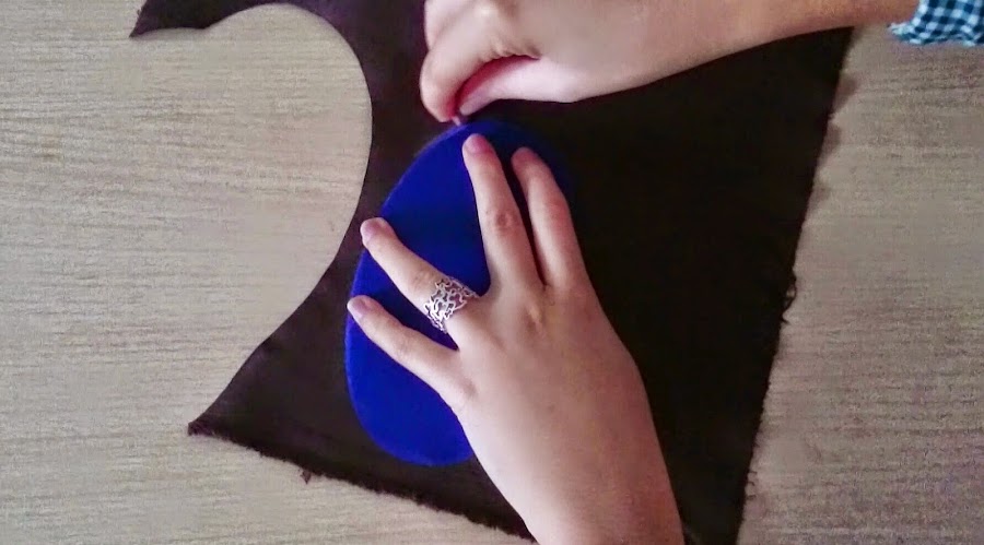 Tijeras y marcador para telaEmpezamos cogiendo una codera que tengamos por casa y marcamos su contorno en la tela. Yo estoy usando pana así que he marcado la figura por la parte de atrás de ésta.