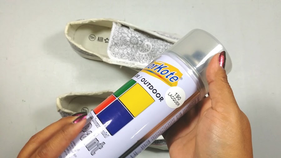 Vamos a darle una pasada con el aerosol Barniz a los zapatos