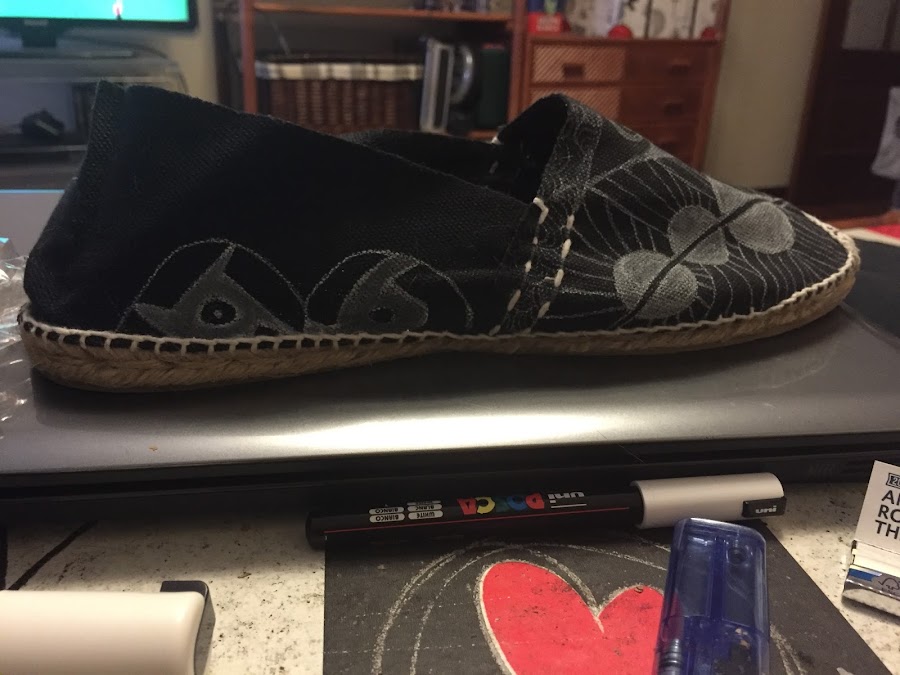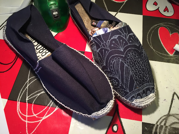 Se pasa un rato muy divertido haciendo esta técnica, y más si es para personalizar algo que te vayas a poner mucho. Unas alpargatas azules que no decían nada, pasan a ser unas que sí lo dicen.