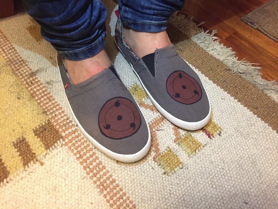 Y como los símbolos de la serie fueron un éxito, hice uno de ellos en la delantera de otro calzado, esta vez con base roja.