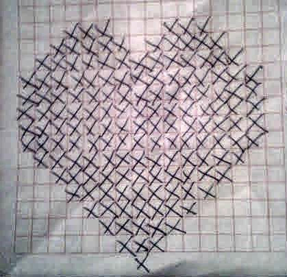 Era una buena candidata a formar parte de nuestra manta, pero los colores no nos iban, y además todavía podíamos sacarle más partido. Lo primero que hicimos fue remendarla, pero no somos tan habilidosas y se notaba un montón, así que hicimos lo que toda la vida se hizo: poner un parche, en nuestro caso a punto de cruz.
