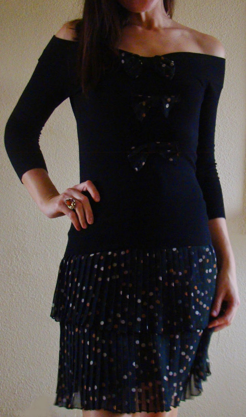 Aprovechando el Rums de hoy voy a contaros el último arreglillo que he hecho. una falda que me regalaron el año pasado, que me faltaba algo que le quedara bien para combinarla. Además me iba un poco ancha y lo primero que tuve que hacer fue estrecharla de los lados, con lo que unos retalillos de la tela plisada de lunares sí tenía...