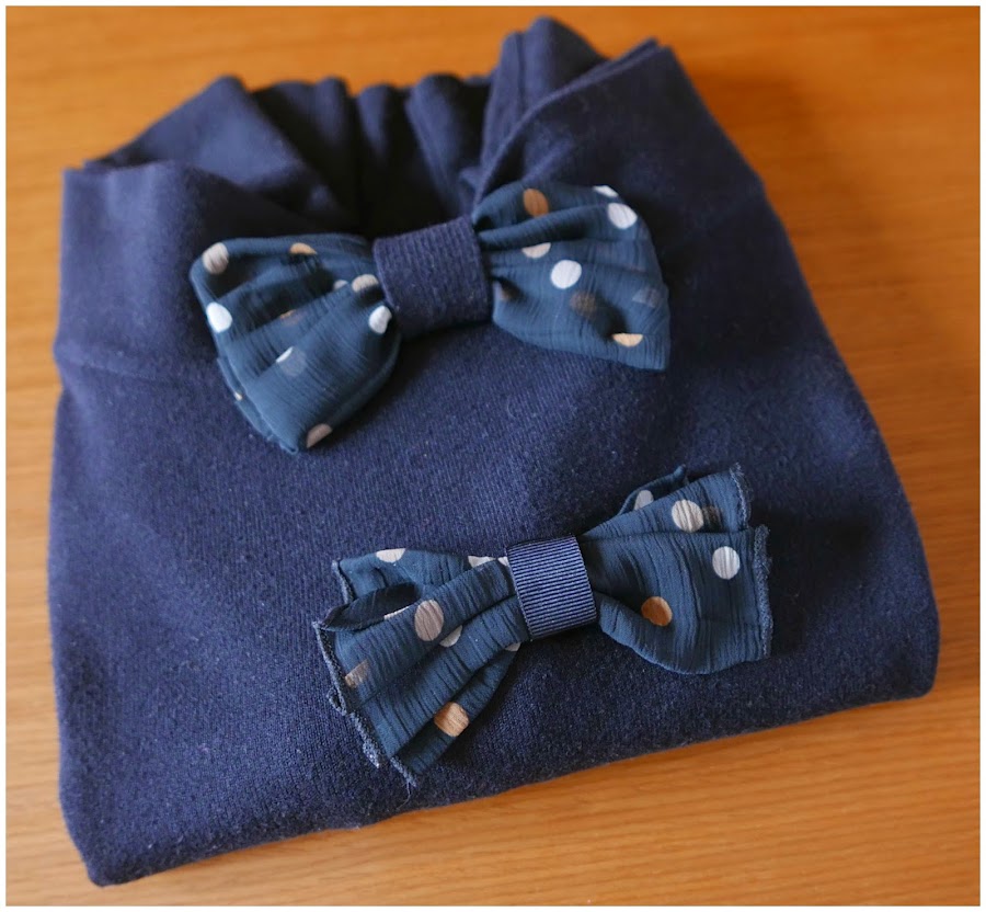 El primero es cosido y vuelto, he aprovechado la presilla que llevaba el jersey, sólo he pasado la tela del lazo por el.