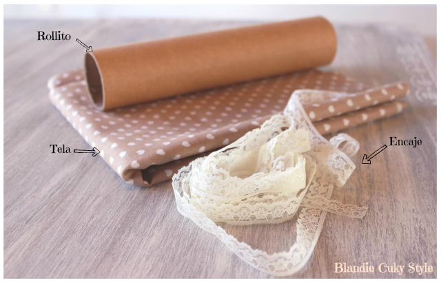 Uno, el rollito del interior del papel de cocina, y dos, la tela. Seguro que la puedes sacar de alguna camiseta o cualquier cosilla semi vieja que ya no utilizas y la ibas a tirar !pues no lo hagas! para esto la vas a necesitar.