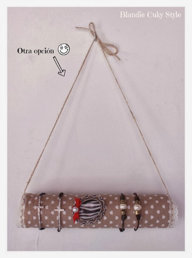 Ahora, sólo hace falta colocar el tubo de cartón dentro del tubo de tela y... tachán!! Ya tenemos el guarda pulseras :-)