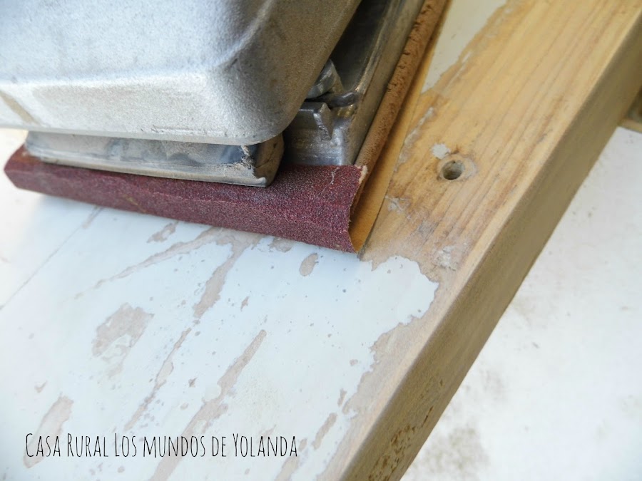 La lijé y desgasté dejando el color original y destapando unas partes de la madera.