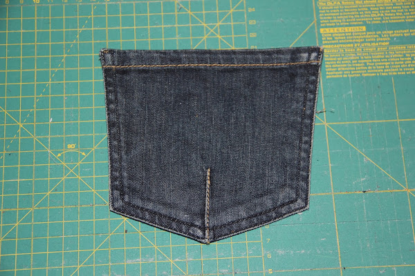 5- Encarar los derechos de los rectángulos de tela vaquera y coser alrededor. Dejar una abertura por la parte inferior para dar la vuelta. Cortar los sobrantes de las esquinas.