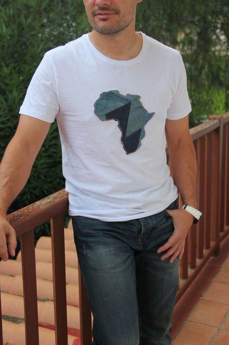Así que en mi búsqueda de algo que pudiera gustarle y que también fuera útil me encontré por casualidad, un día por la calle, con una chica que llevaba un bolso con la silueta del mapa de África en una de sus caras y allí mismo, en mitad de una calle de Sitges encontré la inspiración. ¿por qué no hacer lo mismo en una camiseta?