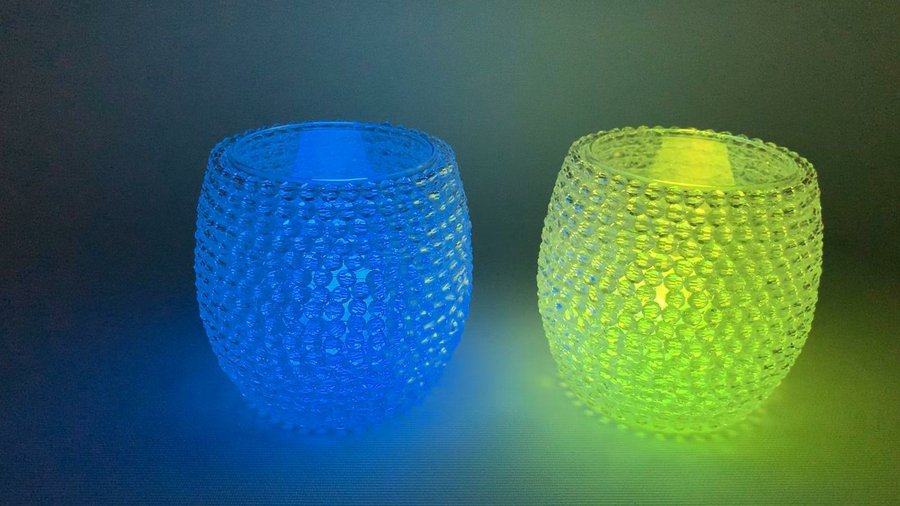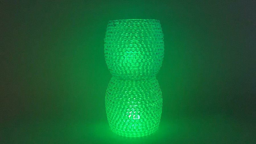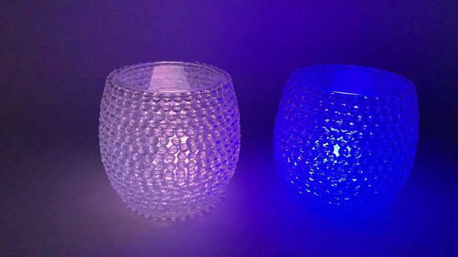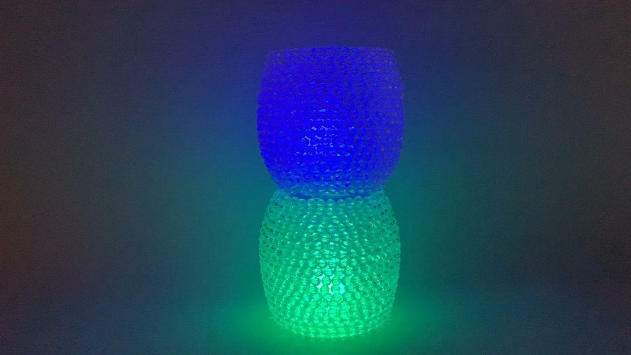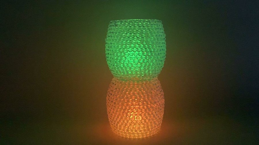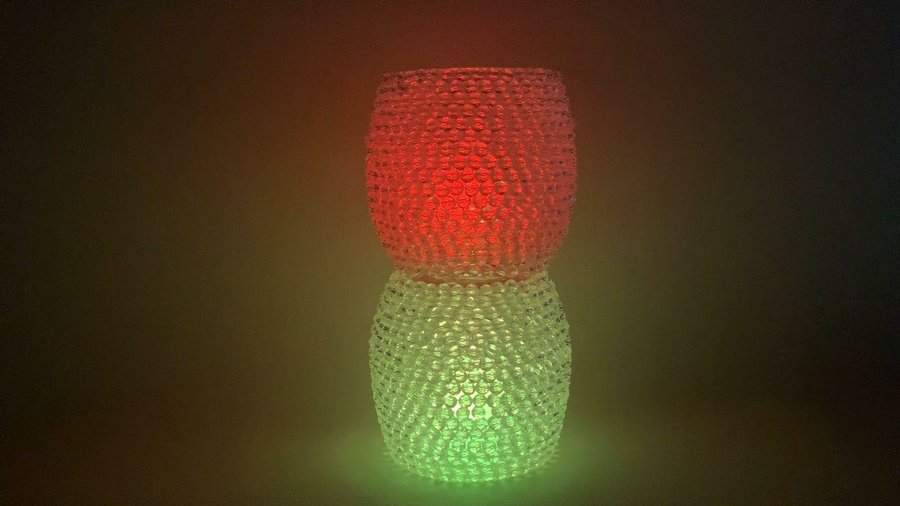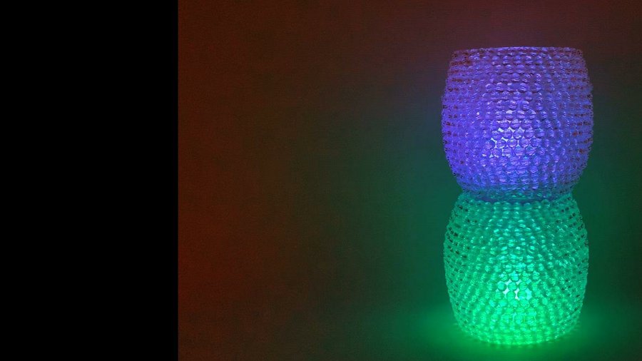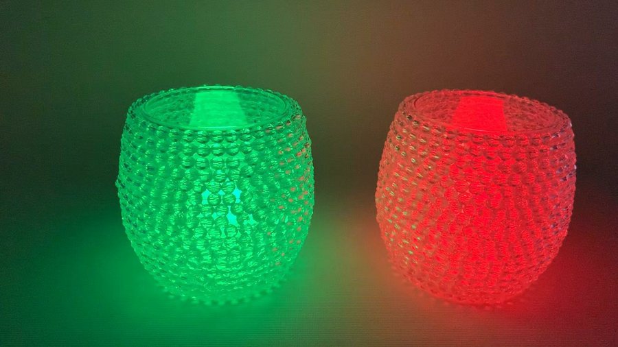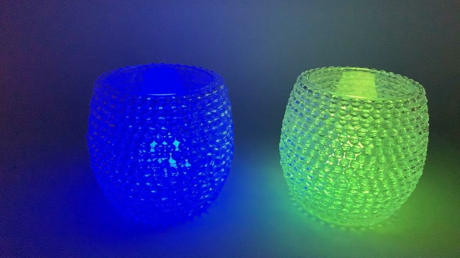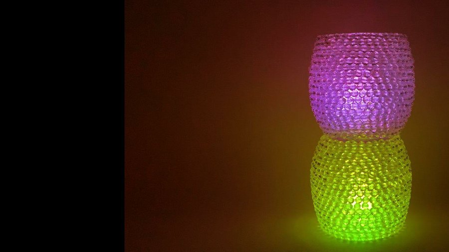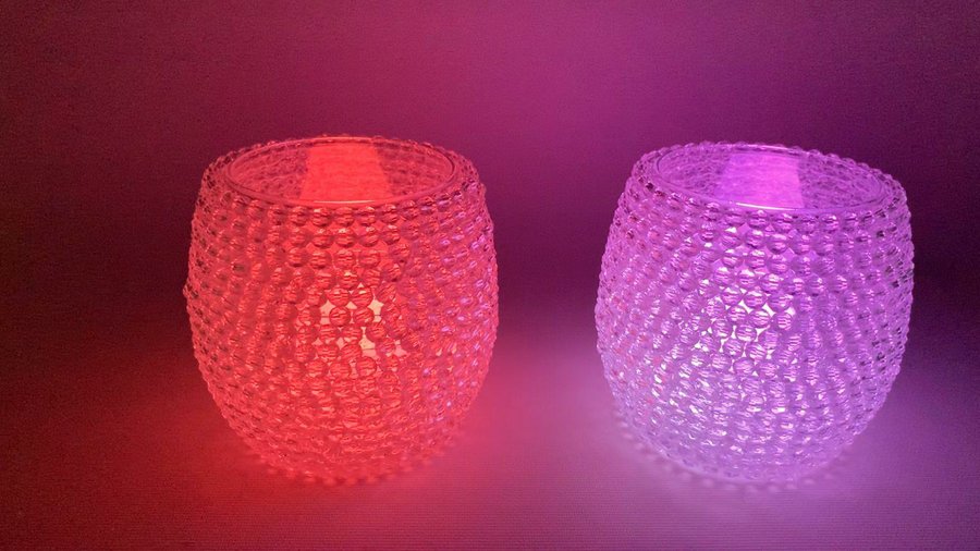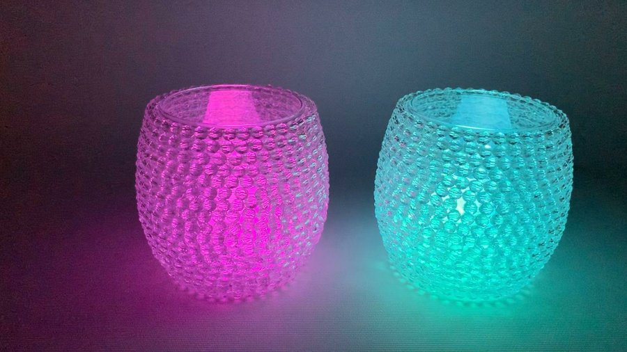 Dentro de cada una coloqué una luz (simula una vela) que cambia de colores y es a pila y al apagar la lyz van cambiando de colores.