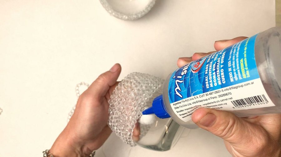 Con pegamento de silicona recorro el borde cubriendo todo alrededor del mismo